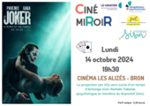 Le lundi 14 octobre 2024 à 19h30, le cinéma Les Alizés de Bron accueillera une projection spéciale de "Joker : Folie à Deux" dans le cadre du Ciné miRoiR. Ce film sera suivie d’un temps d’échanges avec Romain Tabone, psychologue et membre du dispositif Zest, accompagné de l’équipe du CRR.