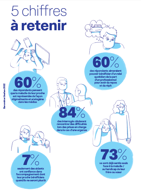 Le rapport donne également la parole aux frère et sœurs des personnes concernées. 73% se sont déjà sentis seuls face à la maladie de leur frère ou sœur et 50% déclarent ne pas être suffisamment informés sur la maladie de leur proche.