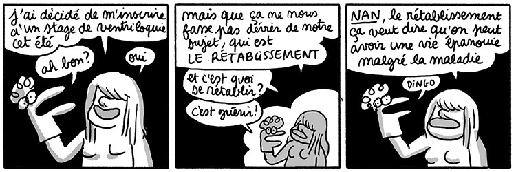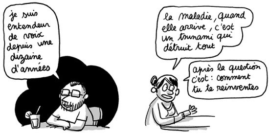 Lisa Mandel est allée à la rencontre de personnes concernées par un parcours de soin en santé mentale. Elle a recueilli leurs témoignages et les a illustrés avec justesse et humour.