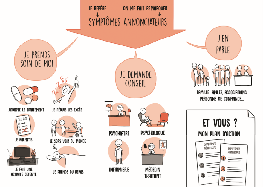 L’outil BiPict entend constituer un support visuel simple d’utilisation et démocratique, pouvant soutenir le discours des praticien-ne-s en santé mentale lorsqu’ils partagent des informations de nature psychoéducative avec une personne concernée par un trouble du spectre bipolaire. Guilhem Bonnazi a développé cet outil dans le cadre de sa thèse, en lien avec Lou Lubie qui a réalisé les illustrations. Ils nous présente dans cette courte vidéo comment utiliser ces supports dans sa pratique professionnelle.