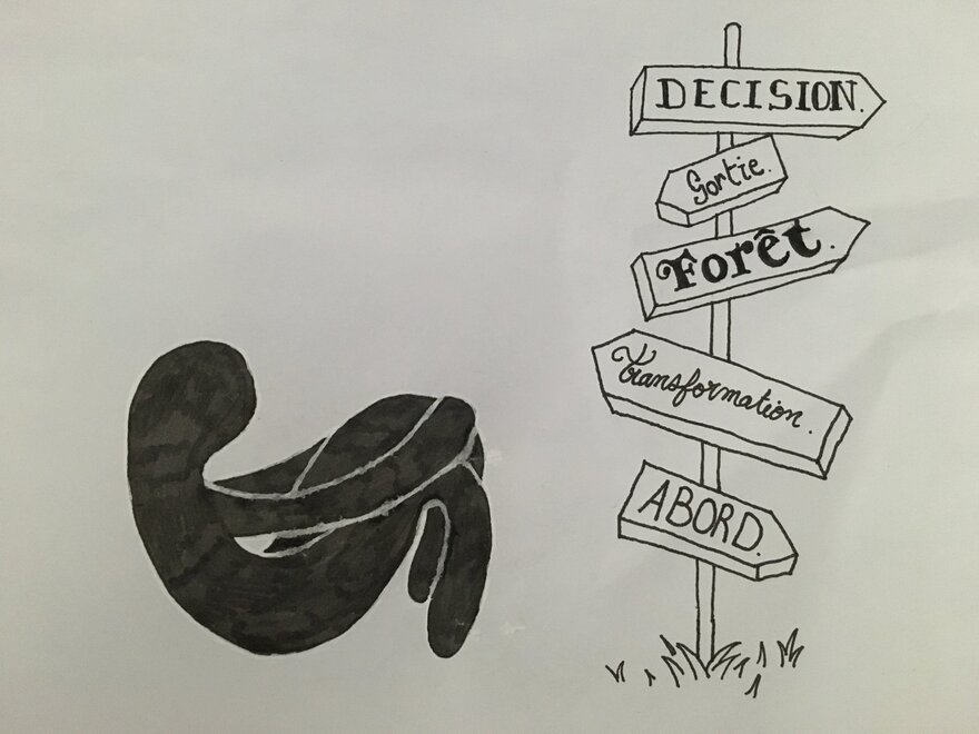 Ces mots ont été choisis : Abord - Sortie - Transformation - Forêt - Décision