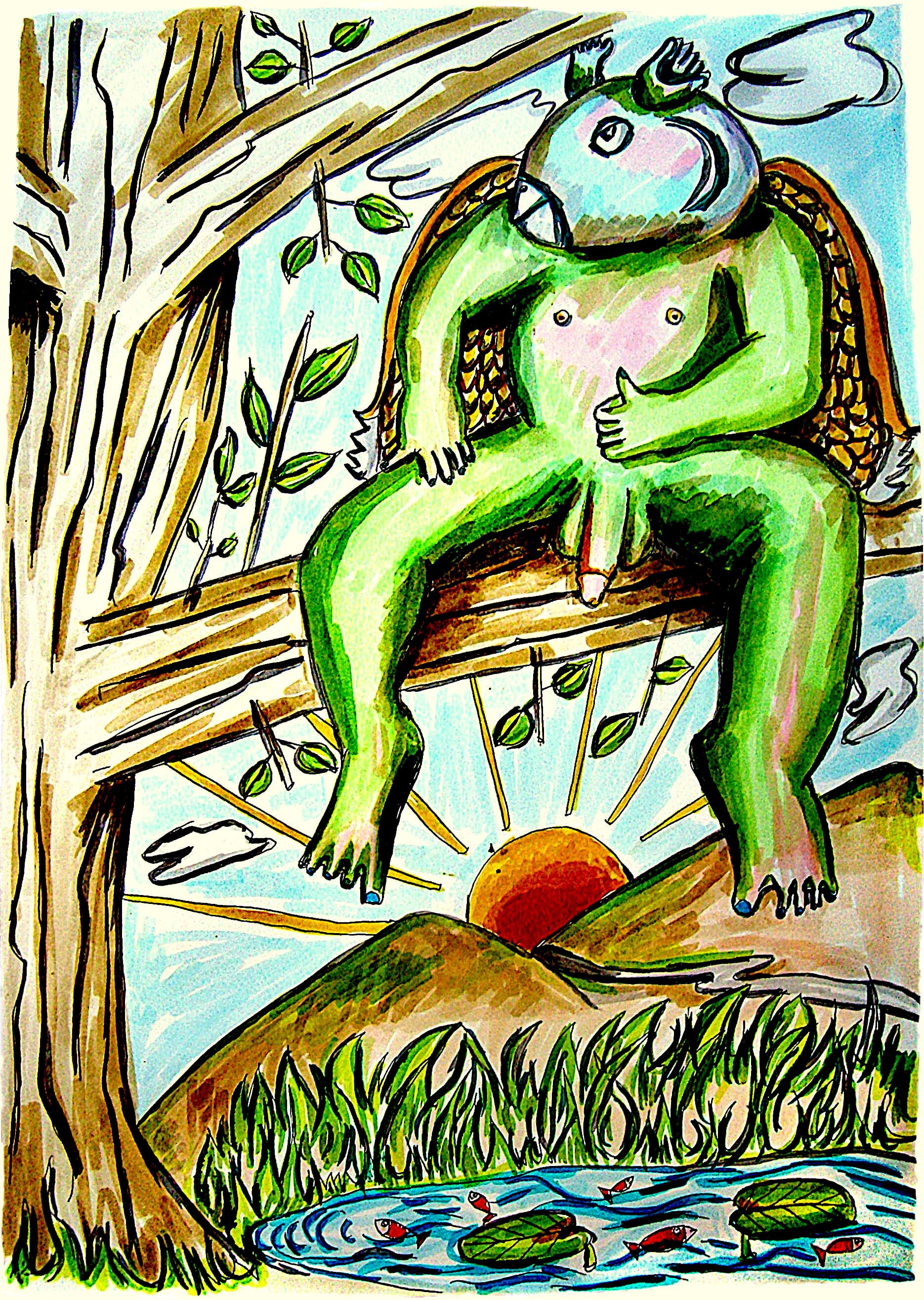 Cet arbre qui n’en compte pas qu’une seule, mais plusieurs m’a accueilli du mieux qu’il a pu, me protégeant des prédateurs. Cette branche est mon refuge et je ne regrette rien. Parfois, la sécheresse, l’aridité sont difficiles à vivre mais on s’habitue tant je suis heureuse maintenant. Les branches ont respecté ma façon de vivre et je m’adapte sans cesse à elles. Parfois je m’aventure, j’ose, je joue et je regarde avec douceur cette eau limpide dans laquelle j’aime me contempler un peu comme Narcisse.