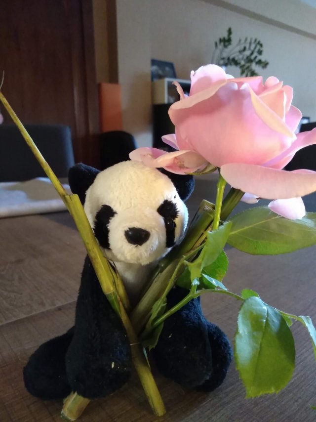 Un de mes plus grands rêves c’ est de l’approcher, de le caresser, de lui faire des câlins et des bisous, de jouer avec lui , de lui donner a manger parce qu’il est si mignon avec sa bouille blanche, ses deux lunettes noires autour de ses yeux qui font des ronds.Des "gobilles" pleines de malice et de tendresse, des petites oreilles noires et sa robe bicolore qui a l’air trop, trop douce. Je le trouve fascinant. J aime a le regarder se déplacer tout pataud, et pourtant je le trouve si élégant.Il est si grand, il a l air si sécurisant. je rêve qu’il est mon meilleur ami, mon protecteur mon confident. Oh ! oui alors, qu’est ce que j’aimerais adopter un panda géant