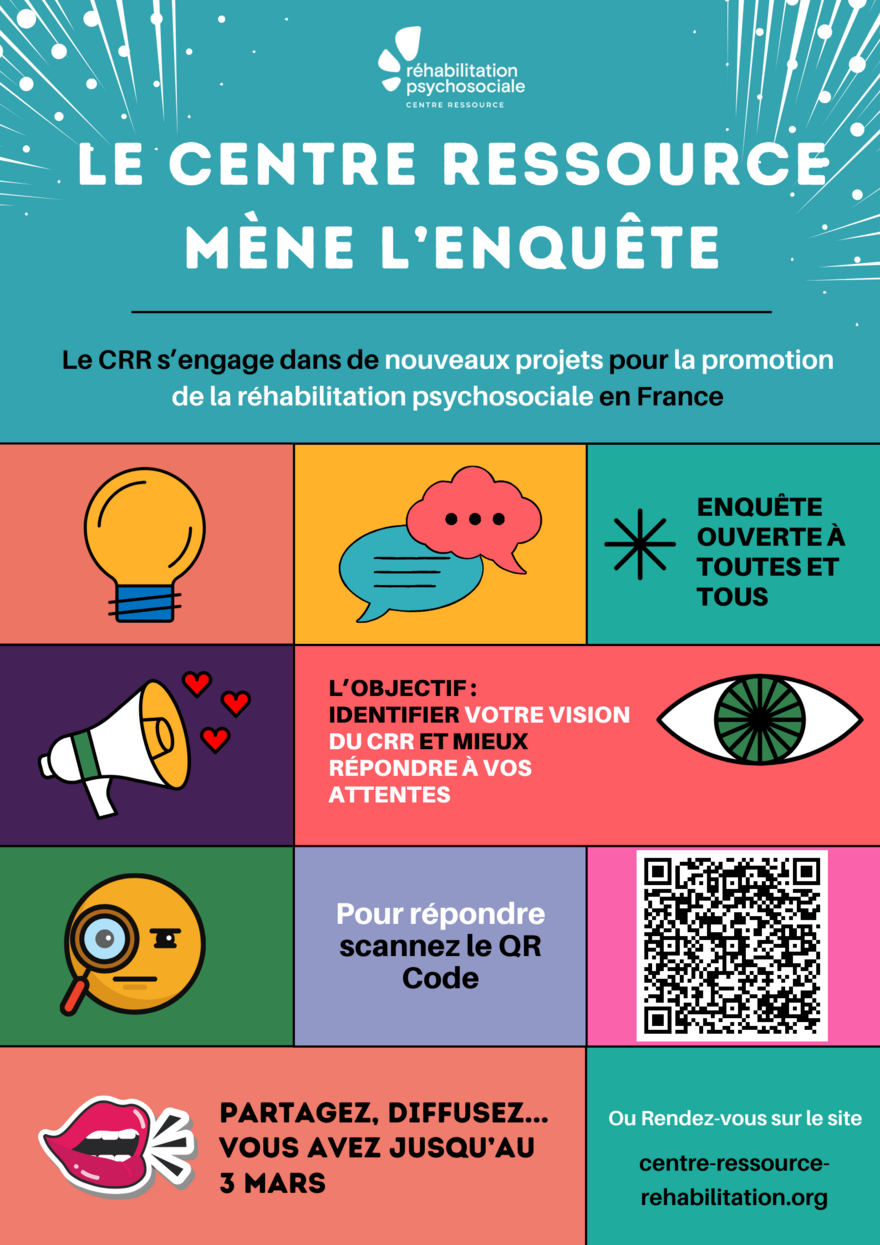Le Centre ressource de réhabilitation psychosociale s’engage cette année dans de nouveaux projets pour la promotion de la réhabilitation psychosociale en France. À cette occasion, pour prendre de la hauteur, il lance une grande enquête ouverte à toutes et tous.