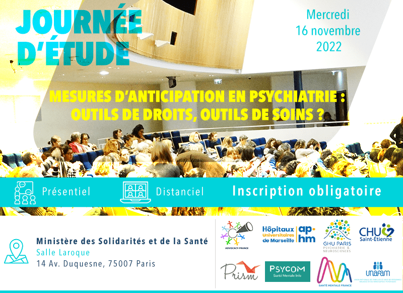Organisation le 16 novembre 2022 au Ministère de la Santé et de la Solidarité de la journée d’études « Mesures d’anticipation en psychiatrie : outils de droit, outils de soin » (Réhab Sud et l’APHM sont partenaires).