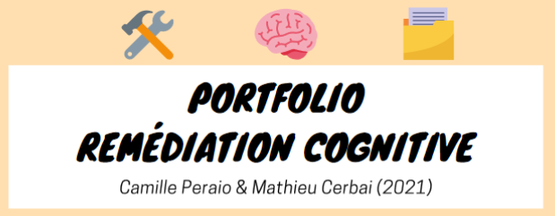 - Le portfolio remédiation cognitive : ce portfolio propose une présentation de la remédiation cognitive avec différents outils et jeux permettant de travailler les fonctions cognitives.