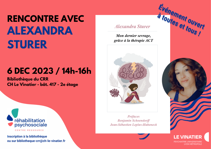 La rencontre se déroulera le mercredi 6 décembre 2023, de 14h à 16h, dans la bibliothèque du CRR, au 2e étage du bâtiment 417 (pôle centre, CH Le Vinatier).