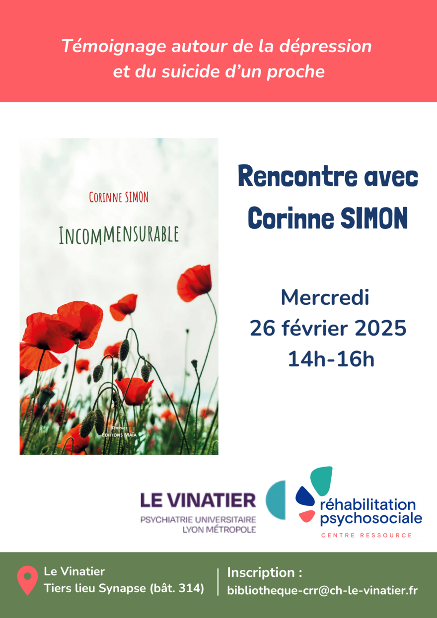 Le livre de Corinne Simon sera proposé en vente à l’issue de la rencontre (prix : 17 euros). Paiement en espèce ou par chèque uniquement.