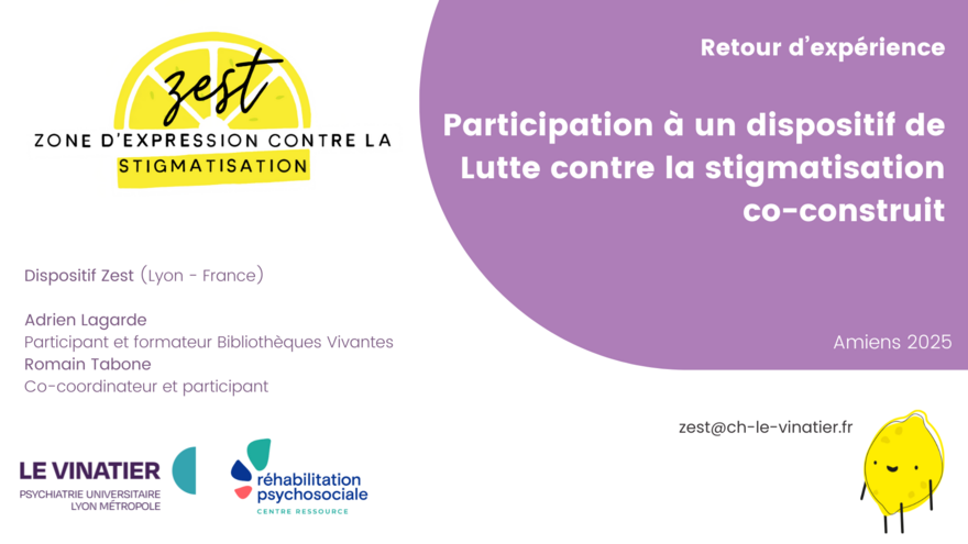 Le 27 juin, des citrons de ZEST (Adrien et Romain) étaient invités à intervenir aux échanges européens de la journée régionale de réhabilitation psychosociale, organisés par les 3 centres support de remédiation cognitive et de réhabilitation psychosociale des Hauts-de-France (CSN2R, CRISALID HDF et CSRPS).