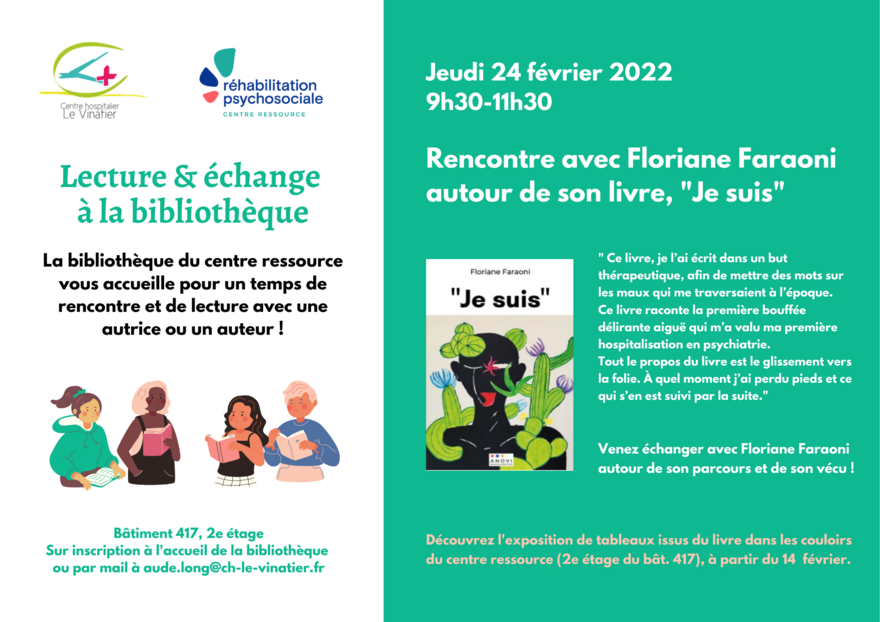 La lecture se déroulera le jeudi 24 février 2022 de 9h30 à 11h30 à la bibliothèque du CRR (2e étage du bâtiment 417, CH Le Vinatier).