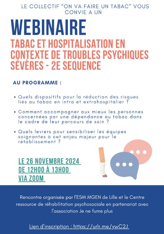 Le Collectif On va faire un tabac vous convie à un nouveau webinaire sur l’accompagnement des personnes fumeuses hospitalisées en psychiatrie.
